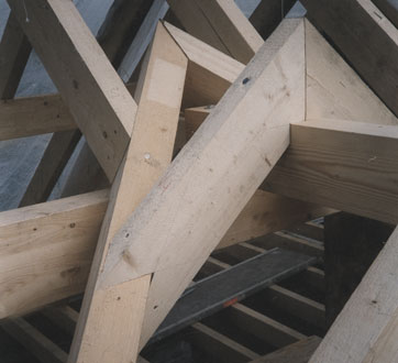 Der Dachstuhl, eines Wohnhauses um 1900, wurde komplett neu aufgebaut.