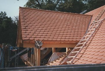 Das Dach wurde mit Zellulose gedämmt und mit Biberschwanzziegeln gedeckt.
