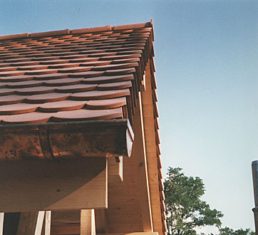 Das windschiefe Dach wurde mit Falzziegeln gedeckt.