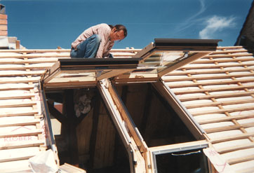 Der Dachstuhl wurde saniert und um eine Dachterrasse mit Dachfenstern erweitert.