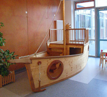 Das Spielschiff wurde speziell für den Wartebereich im SPZ der Kinderklinik Memmingen von uns entworfen und umgesetzt.