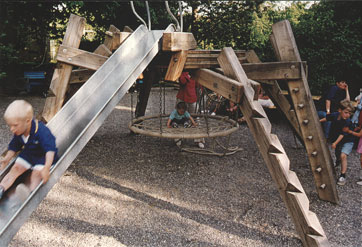 Das Klettergerüst steht auf einem öffentlichem Spielplatz in der Innenstadt von Zürich.